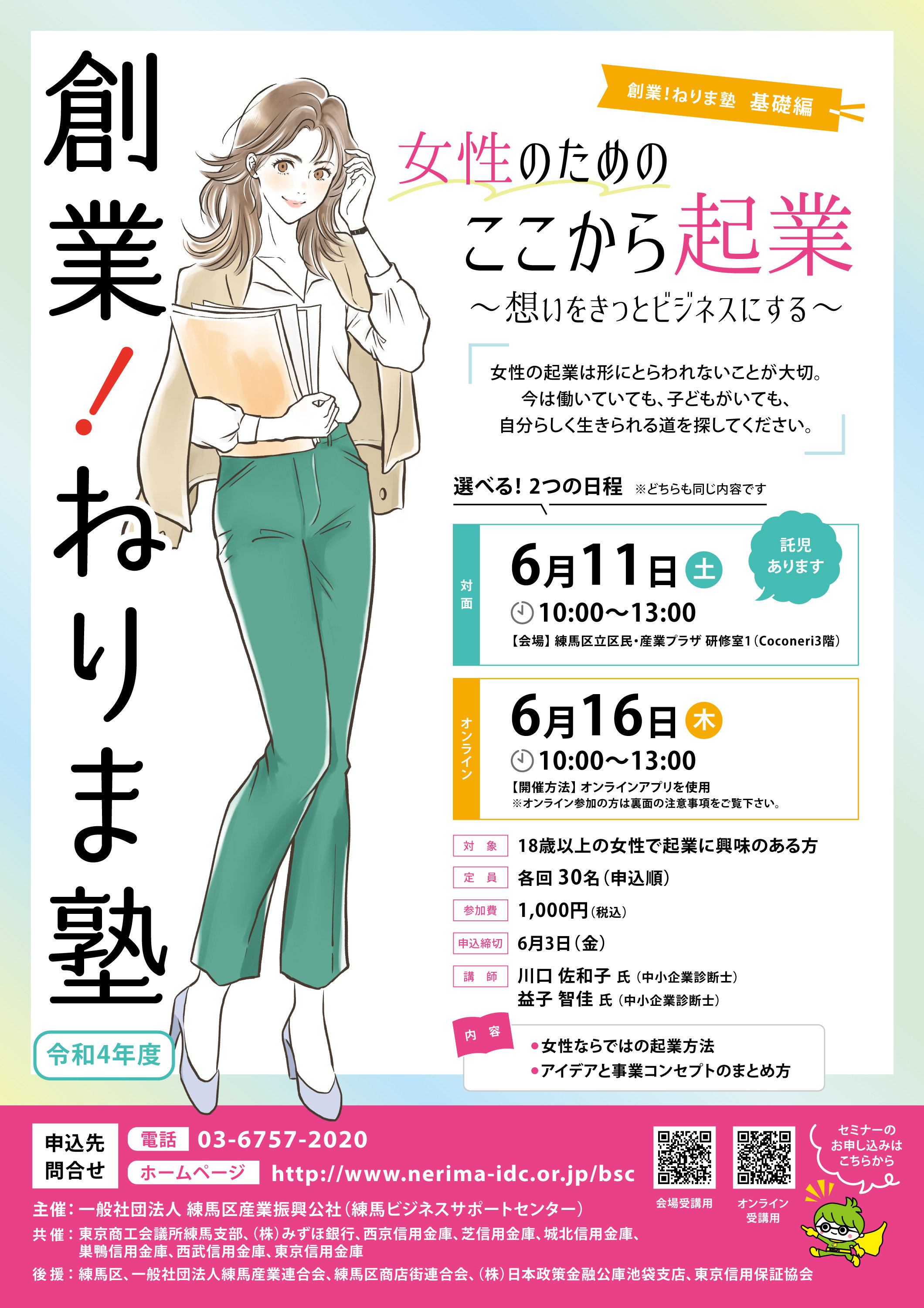 女性の方で創業に興味がある方を対象に、創業!ねりま塾 女性のための起業セミナーを開催します。